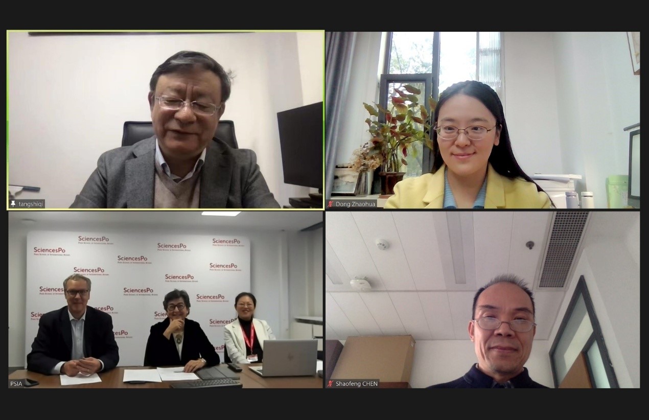 10月28日下午,北大国际关系学院院长唐士其教授与法国巴黎政治大学巴黎国际事务学院院长Arancha González Laya教授举行线上会谈。双方就北大-巴政双硕士学位项目的发展进行了沟通与交流。
