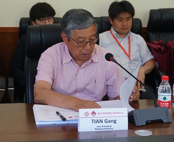 北京大学田刚副校长致开幕辞。田刚对早稻田大学代表团的到访表示热烈欢迎,祝贺第一期北大—早大合作研究交流会成功举办。田刚指出,自上世纪80年代正式缔结校际交流合作关系以来,北大和早大开展了各层次、多领域的密切往来,合作项目涵盖博士生联合培养、本科生双学位、亚洲校园计划等多样类型。北大—早大合作研究交流会,将成为两校在学术领域进一步深化合作的创新探索,搭建起中日两国师生相互学习、交流共进的重要平台。