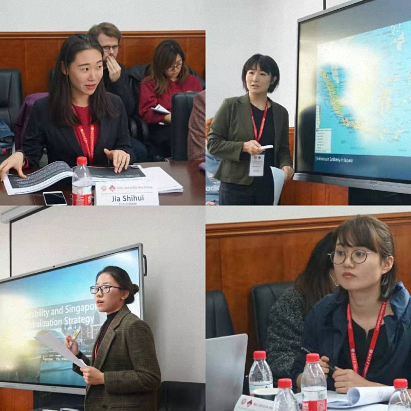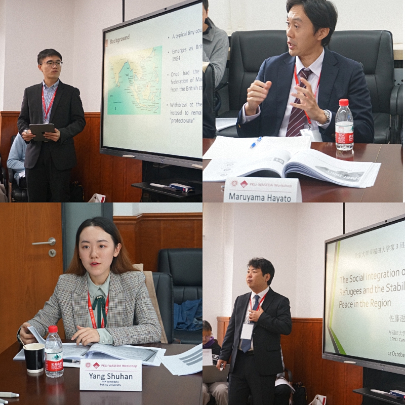 接下来,来自北京大学与早稻田大学的七位博硕同学代表分别发言。北京大学的博士生孔金磊以文莱1963年拒绝加入马来西亚联邦为案例,分析了殖民体系、地理位置等要素对部分小国国家政策的影响。早稻田大学的博士生佐藤滋之以阿富汗难民的社会整合问题为切入点,为实现该地区和平探究可行方案。北京大学的博士生贾诗慧就巴拿马宪政改革及其对菲律宾的借鉴发表演讲,早稻田大学的博士生Hayato Maruyama分析了日本中小型国际合作公司的海外扩张带来的影响,并由此展望了中日经贸关系。北京大学的硕士生杨舒涵从政治、经济、外交等多领域分析了加入东盟对老挝外交中的“二元结构”的影响。早稻田大学的博士生Abe Kazumi就印度尼西亚巴布亚地区快速发展的影响进行了发言。最后,北京大学的硕士生王艺霏以小国的脆弱性与新加坡的全球化战略为主题发言,指出全球化背景为小国的发展提供了新的机遇。