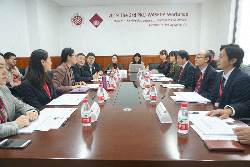 2019年10月18日上午,第三期北大—早大合作研究交流会在北京大学国际关系学院成功举办。本期交流会聚焦“东南亚研究的新视角”主题,两校学者和学生围绕东南亚政治经济、小国与国际关系、全球化等各领域的具体问题展开了深入的研讨交流。北京大学国际关系学院韦民教授、早稻田大学国际部副部长鍋嶋郁副教授、国际事务部部长高木范夫、社会学学院山田满教授,以及北大和早大的三十余名学生参加了此次交流会。