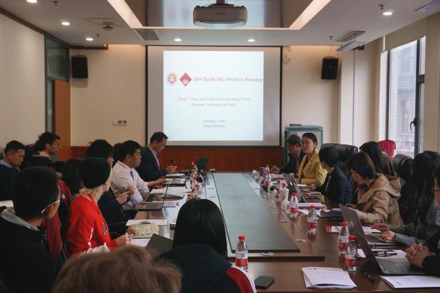 2019年11月1日上午,第四期北大—早大合作研究交流会在北京大学国际关系学院成功举办。本期交流会以 “发展中世界的和平与冲突:资源、技术与贸易问题”为主题,两校学者、学生围绕地区和平安全、经济全球化、第三世界发展等问题展开了深入的研究。北京大学国际关系学院董昭华副院长、查道炯教授、赖华夏助理教授,早稻田大学国际部部长Rhee Maji Christine、国际教养学院大門毅教授、国际事务部部长高木范夫及北大早大二十余名学生参加了此次交流会。