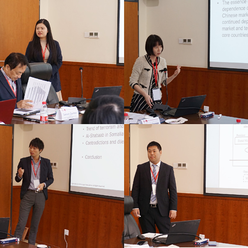 接下来由北京大学和早稻田大学的六名学生进行发言。北京大学博士生邹雨君分析了在大国竞争与能源经济背景下,美国对非国家政策与理念的转变。早稻田大学博士生Takashi Nagatsuji通过分析撒哈拉以南非洲部分地区的选举数据,阐述了颠覆性选举对民主政治可能造成的消极影响。北大博士生陈仪婷以中国大陆地区在全球价值链中的攀升为切入点,重新审视了两岸关系。接下来,早稻田大学的博士生Yosuke Nagai发表了题为“如何应对极端暴力分子:探究索马里地区的治理困境”的讲话。最后,早稻田大学研究生Deekeling Anna Pauline 与Umeyama Sophie Shiori介绍了有关地区和平构建研究项目的分析框架和写作计划。