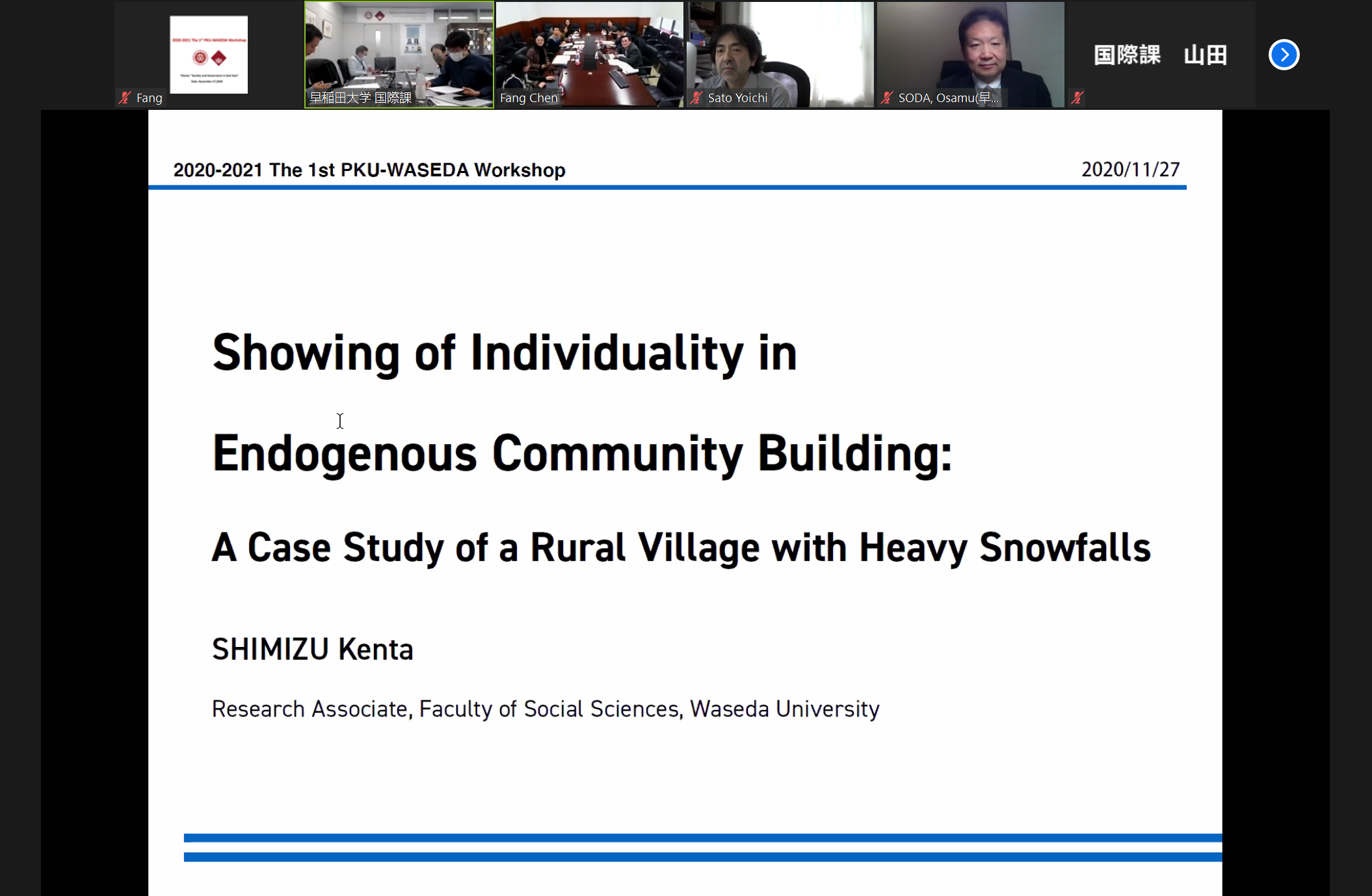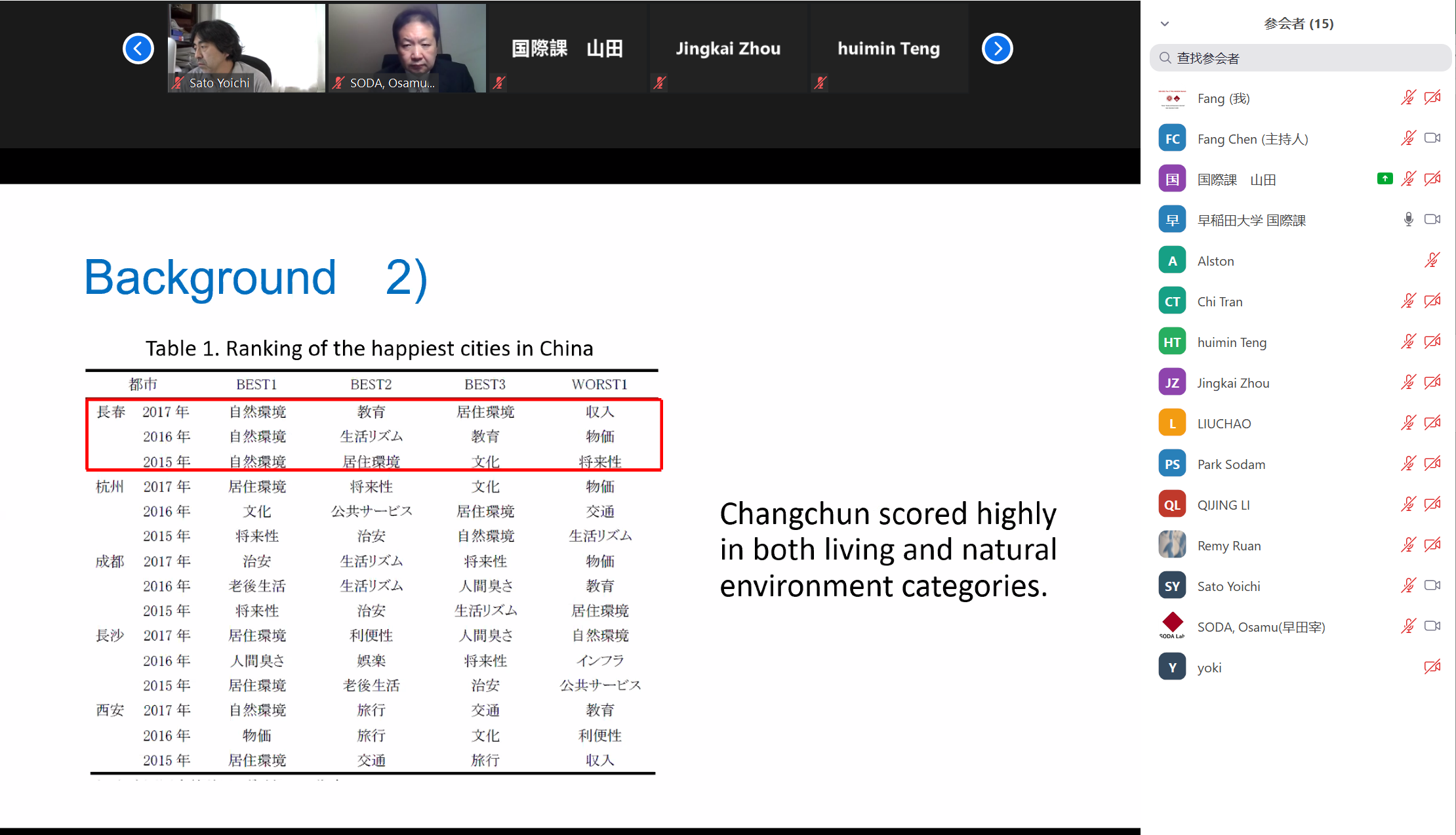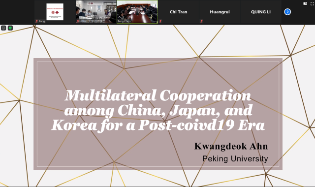 接下来分别由三位来自北京大学与早稻田大学的博士生代表发言。早稻田大学的博士生Shimizu Kenta同学巧借“面子”理论,以日本某村庄为例分析了 “个性”如何在共同体建构的过程中发挥影响。北京大学的博士生安光德(Kwangdeok Ahn)同学分析了中日韩应对疫情的现状,并提出了未来东亚多边合作的蓝图。早稻田大学的博士生吴臻同学以长春为例,通过实证调查,结合长春殖民时期的城市治理经验及与堪培拉等城市的对比,分析了长春的城市规划特点,并再此基础上总结了该案例对于城市治理一般经验的启示。
