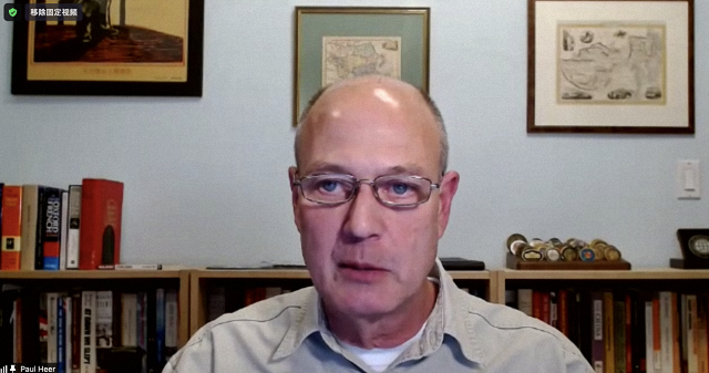在第一个环节中,美国国家利益中心资深研究员保罗·希尔(Paul Heer)与中国国际问题研究院院长徐步分别作了开场发言。