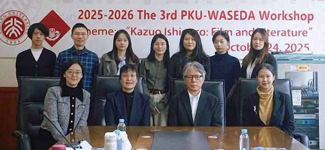 2025年10月24日,2025-2026年第三期北大-早大合作研究交流会在北京大学国际关系学院成功举行。会议主题为“石黑一雄:电影与文学”。早稻田大学国际文化与传播研究科教授吉本光宏,北京大学外国语学院日语系副教授翁家慧,北京大学外国语学院日语系博雅博士后徐一然,以及两校的十余名师生参加了交流会。师生围绕文学的跨媒介改编、翻译文化、历史叙事的重构、创伤记忆的跨代际传承等议题展开交流和讨论。