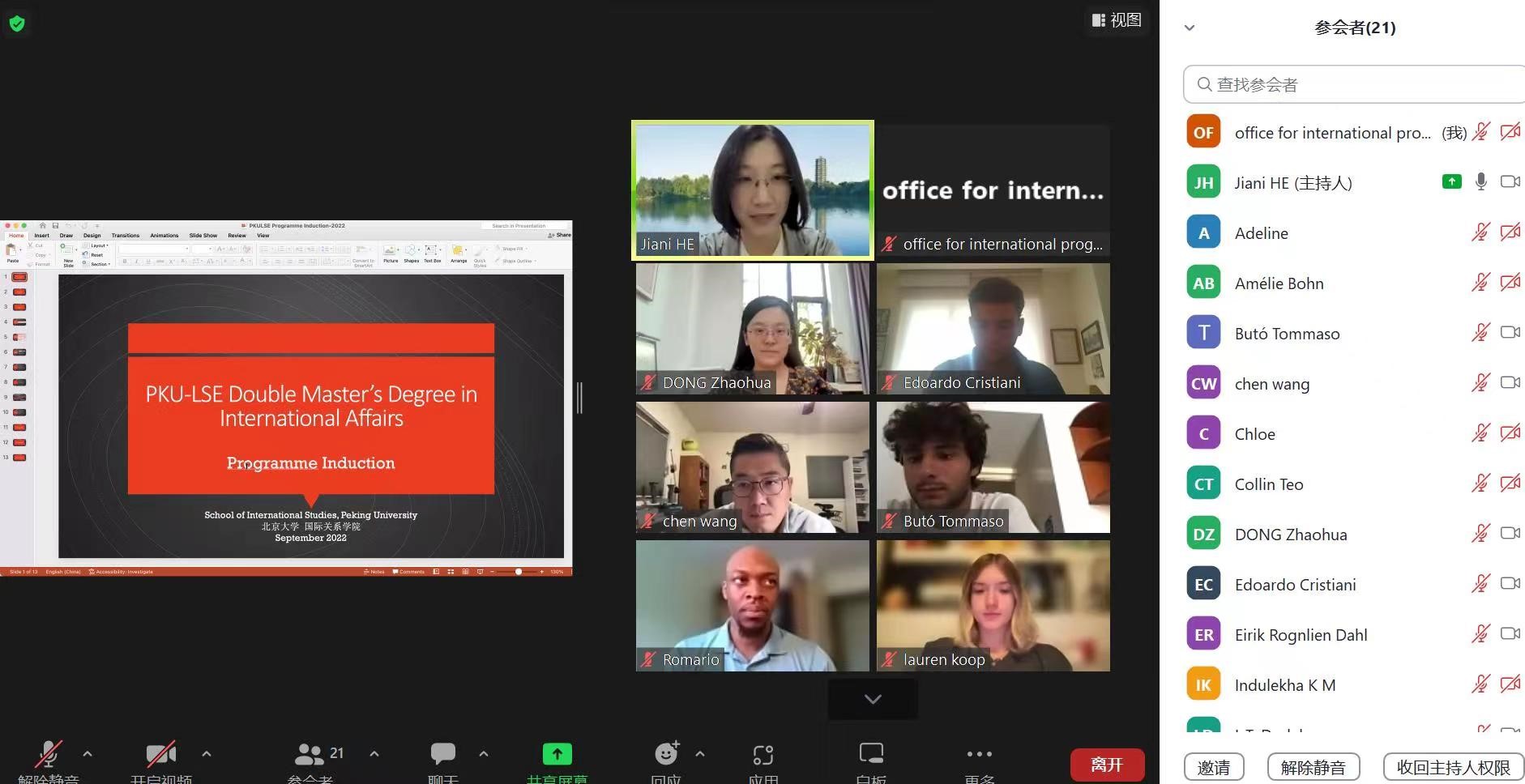 2022年8月31日至9月2日,学院为国际项目新生举办五场迎新见面会。来自欧洲、亚洲、美洲、大洋洲和非洲五大洲的68名学生在云端相见:其中包括北大-早大本科双学位项目14人,北大-LSE国际关系双硕士项目24人,北大-巴政国际关系双硕士项目7人, MIR国际关系硕士项目15人,亚洲校园项目8人。学生毕业于康奈尔大学、加州大学伯克利分校、伦敦大学学院、巴黎政治大学、东京大学等世界名校,来自于美国、英国、法国、德国、意大利、西班牙、比利时、日本、韩国、新加坡等23个国家。