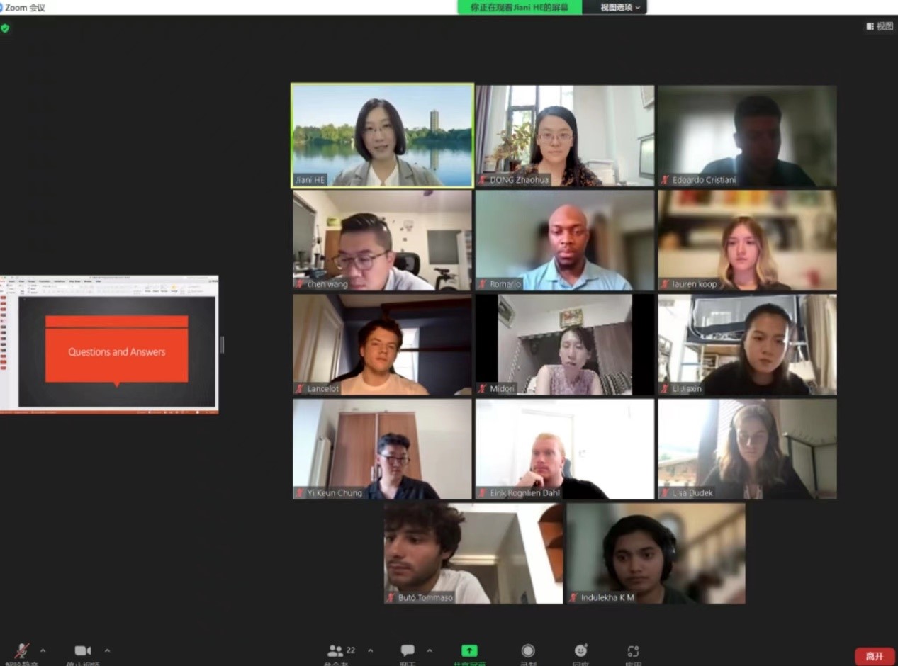 董昭华老师代表学院热烈欢迎各位新生进入北大学习,鼓励同学们珍惜北大国关学院多元、包容的文化氛围,充分利用线上和线下的学习方式努力完成学业,并期待早日与同学们相聚校园。随后,各位项目学术主任老师围绕教学方式、学分培养、论文答辩等内容做了详细的介绍,并就同学们关心的问题逐一进行了解答。本科教务办公室闫岩、徐建春和国际项目办公室佟天宇、王娟、张静雪老师分别参加了各项目的见面会,对学生们学业中的各项具体事务给予了耐心细致的指导。各项目还特别邀请了MIR项目校友代表Tom Yang Yutian和Gregory Plummer,亚洲校园项目院友李冠儒参加迎新会并分享线上线下学习和海外生活经验。