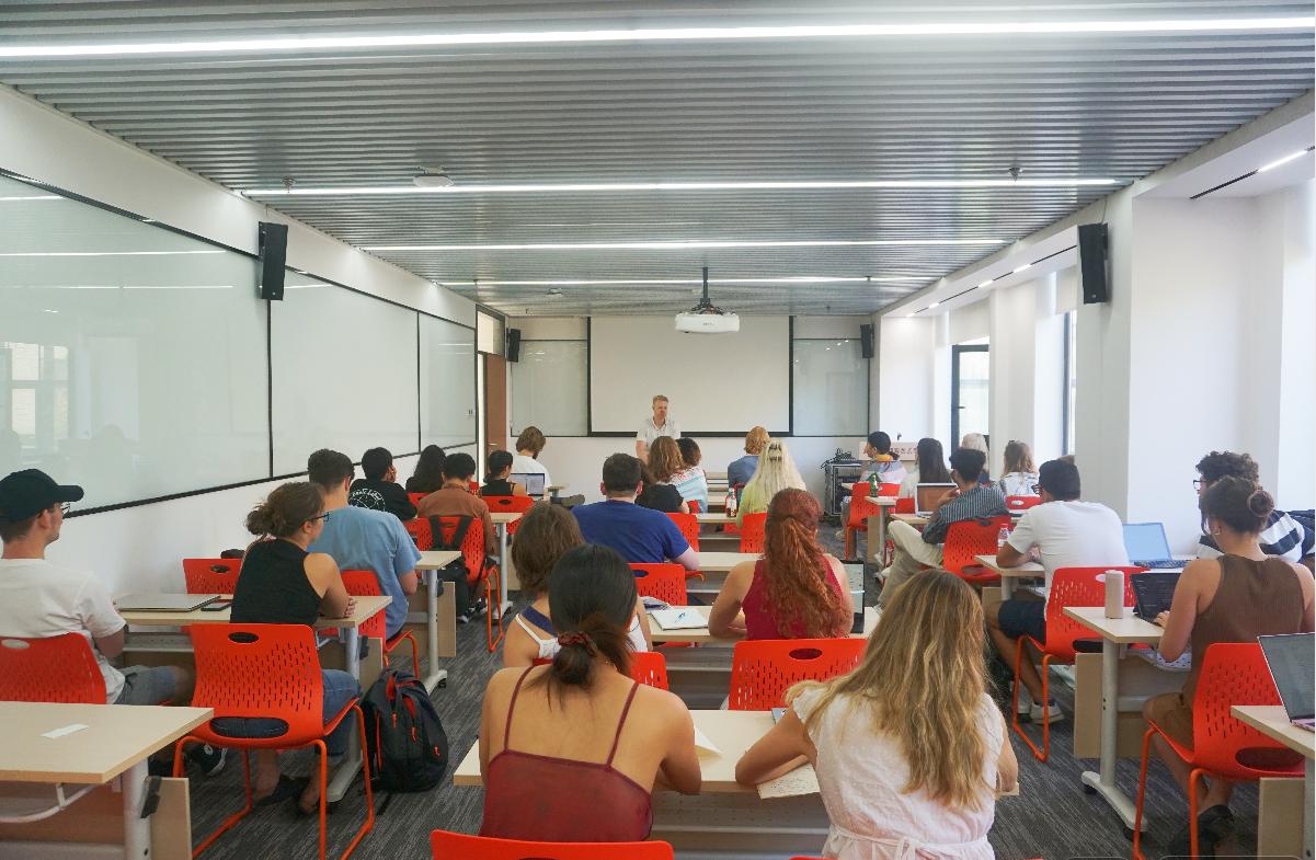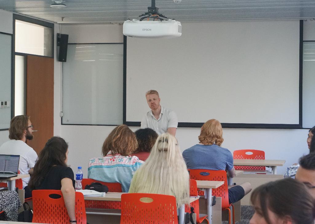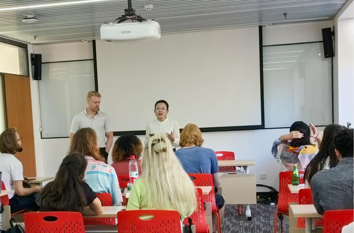 9月22日(星期五)下午,国际项目留学生交流活动在国际关系学院C201教室举行。本次活动的主题在于通过往届毕业生的交流分享,帮助双硕士项目学生熟悉在中国的工作机会,分享工作体会和求职经验。活动由北大-巴政项目主任徐沁仪老师主持,邀请2017年毕业于北大-巴政双学位项目的Mathias Larsen作为主讲嘉宾,与在场的三十多名留学生分享他在北大学习的经历以及在中国工作生活的经验。