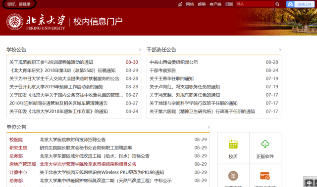 Please visit http://portal.pku.edu.cn/infoPortal/ to complete the online course enrollment if you understand Chinese well. Each PKU staff and student has a personal log-in account for accessing to their own Portal (see to a screenshot below). For 2019 SIS graduate student, your user name is your 8-digit student number and the initial password is your 8-digit date of birth (e.g.: 19860915 for 15th September 1986).