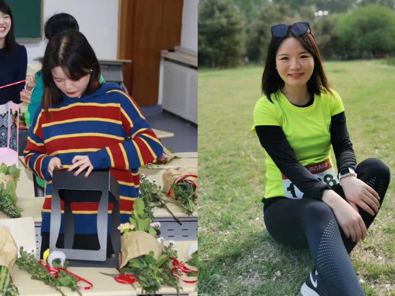 在工作之余,我非常喜欢参加学院工会组织的各项活动。学院工会是一个活力满满和温馨甜蜜的组织,,印象最深的是每年三八妇女节,工会老师们总会悉心筹划和组织异彩纷呈的活动,包括 “花道美学 插花有术”的体验活动、“世界因你而美丽”服饰搭配讲座、“环未名湖接力跑”和“人际交往中穿衣说话那些事”主题讲座等等,我从中不仅学到了不少相关的专业知识,陶冶了情操,也更加激励我满怀热情投身于工作当中。此外,我还积极参与学校运动会和各项球类比赛,获得过北京大学运动会铅球第三名、800米第三名、北京大学教职工游泳比赛100米蛙泳第四名等好成绩。
