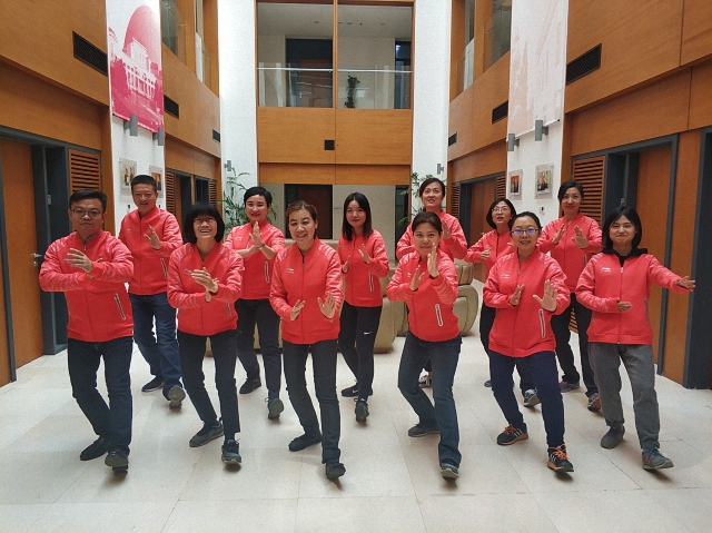 接着,学院工会组织的一支14人的团体操表演队伍,参与了学校教职工集体表演环节。学院的表演方队动作到位、精神焕发、表现突出,这都离不开参与教师在筹备阶段每天定期的学习和排练,大家在工会文体委员陈阳老师的耐心组织下,态度认真、积极参与,在运动会团体操表演中一展风采。