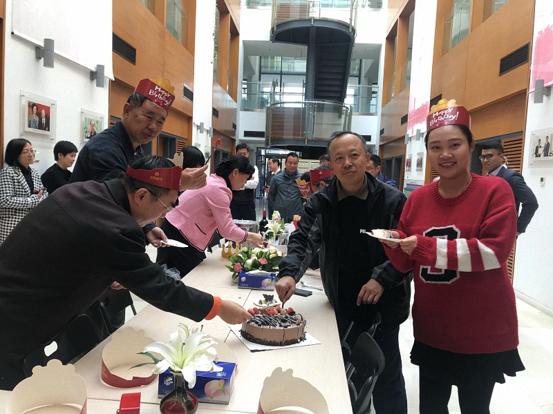 2019年10月22日中午,国际关系学院工会在学院A座大厅为本院10月份过生日9位教职工集体庆生。学院工会精心准备了生日蛋糕、披萨、红酒和温馨浓汤,学院老师们陆续到场送上生日祝福,活动现场轻松、愉快、暖意融融。