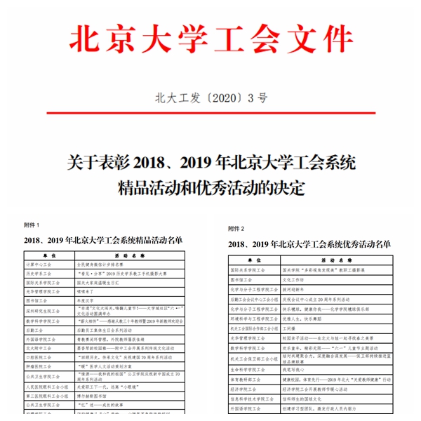 2020年11月24日,国际关系学院工会申报的两项活动分别获评北京大学工会系统精品活动和优秀活动,其中“国关大家庭温暖生日汇”获评精品活动,“多彩视角发现美教职工摄影展”获评优秀活动。此次活动的申报得到了工会主席闫岩老师和副主席霍艳丽老师的大力支持,霍老师更是利用几周的时间,精心制作了精美的PPT和展示材料,现场的展示更是精彩纷呈,充分展现了国关大家庭活动的丰富和温暖。