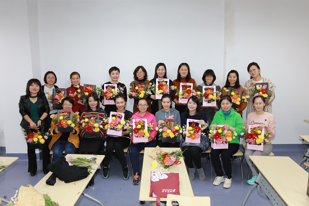 插花活动传递了美好生活理念,活动过程浪漫、温馨,加强了女教职员工之间的交流,沁人心脾的花香,色彩斑斓,使大家在感受美、欣赏美、创造美的过程中,享受着工作之余生活的美好。