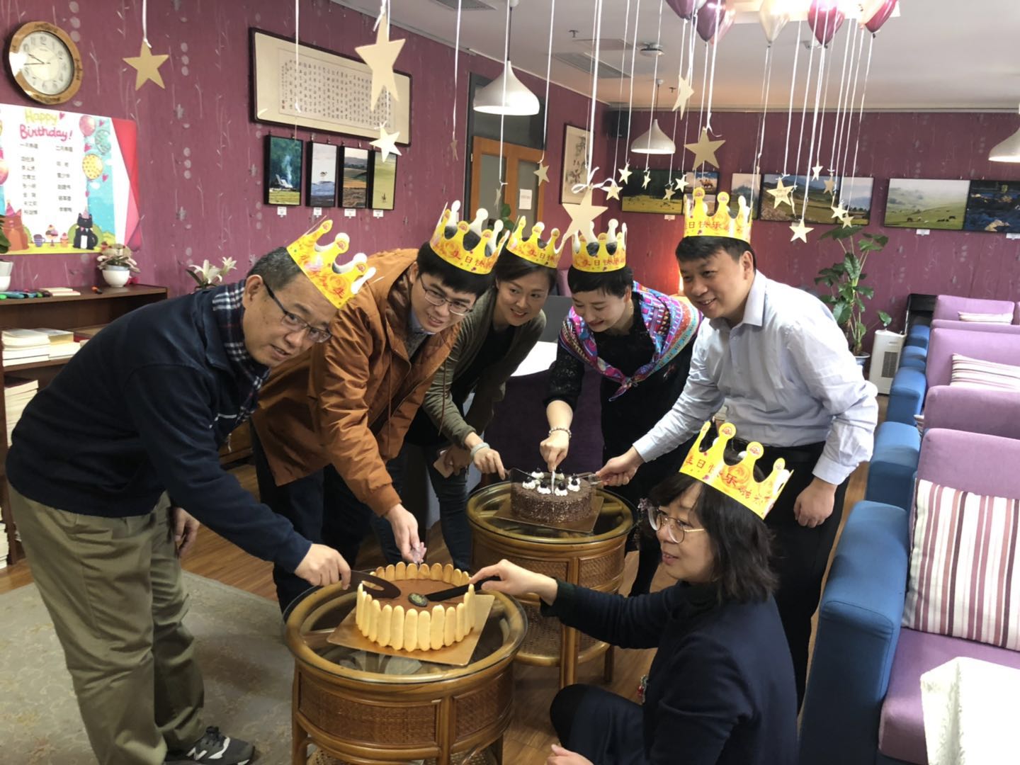 2019年1月11日上午,国际关系学院博诚咖啡厅装扮一新、彩球高挂,学院工会为1、2月份过生日的教职工举办集体生日庆祝会。学院共有13位教职工将在2019年的1月至2月迎来自己的生日,此次活动是学院工会2019年推出的系列“生日汇”的第一场。从本年度开始,工会将定期为当月或寒暑假两个月内过生日的教职工举行集体“生日汇”,为大家提供共同庆祝、欢聚一堂的交流机会。
