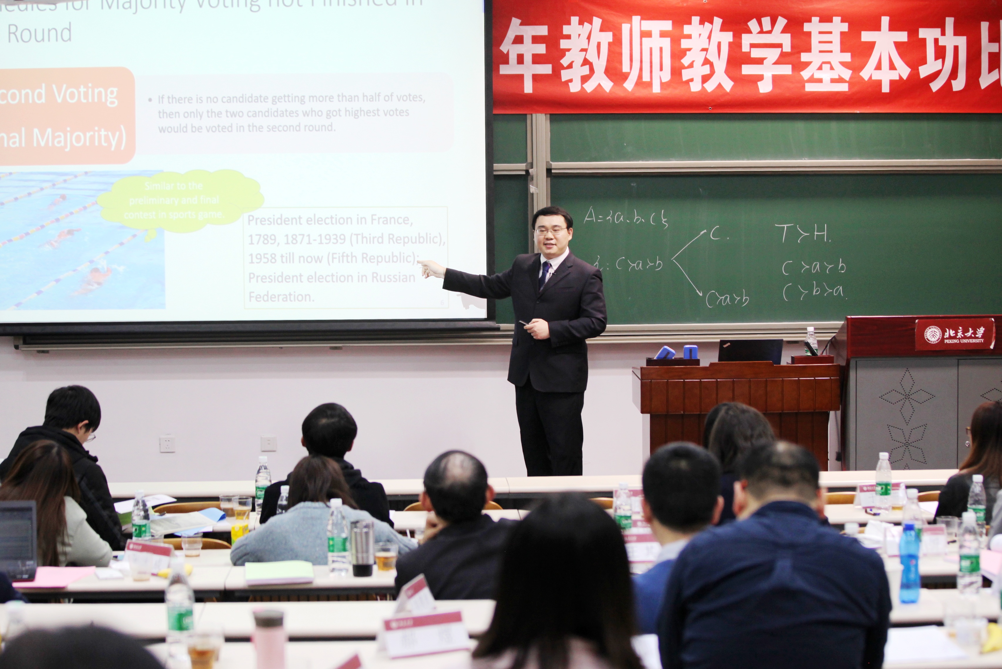 北京大学第十八届青年教师教学基本功比赛于12月1-2日顺利举行,来自学校24个学院(系、所、中心)、深圳研究生院的41名青年教师分人文社科和理工组两组,参加了比赛。