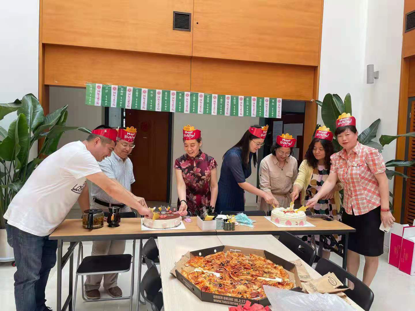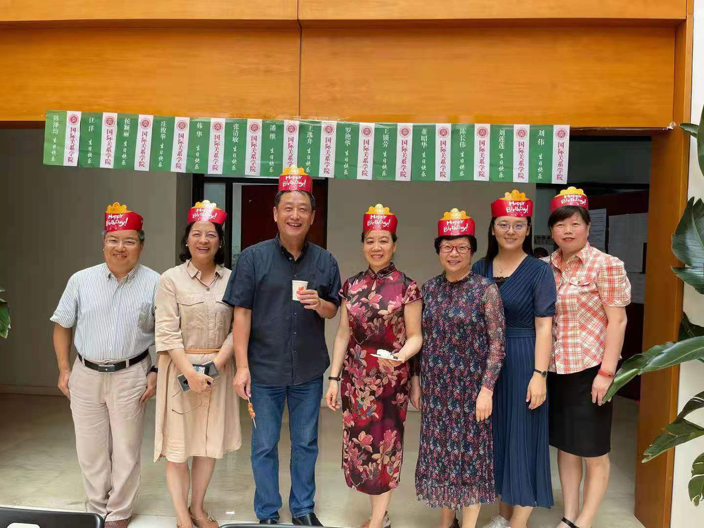 7月 6日,夏日炎炎,国关学院六七月生日会如期举行。此次生日会在学院A座大厅举行,学院工会主席闫岩老师、副主席霍艳丽老师的精心策划,准备了美味的生日蛋糕和诱人的红酒,学院老师们纷纷前来庆贺,在清凉的环境中为6月、7月份过生日的寿星们送上生日祝福,送去一丝清凉。六、七月生日会的寿星有韩华老师、王锁劳老师、罗艳华老师、刘莲莲老师、陈泽均老师、汪洋老师、潘荣英老师、张清敏老师、刘伟老师、侯颖丽老师、王逸舟老师、董昭华老师、庄俊举老师、陈长伟老师和潘维老师,虽然有的老师因公务在外没能赶到现场,但是大家分别通过微信等线上线下方式,参加了此次生日会。