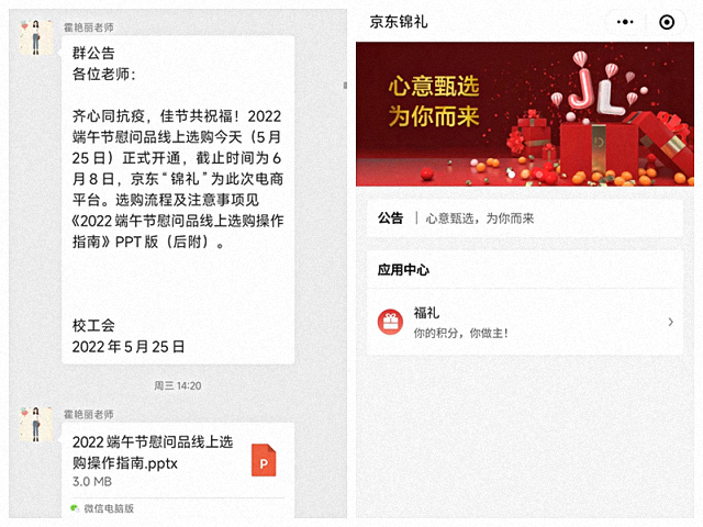 今年的端午节慰问品采用线上选购的方式,会员们可以通过个人会员号登陆线上平台,选购个人喜爱的礼品。线上选购时间自5月25日正式开通,截止时间为6月8日。北京大学工会贴心为会员们准备了《2022端午节慰问品线上选购操作指南》PPT版,详细说明了选购流程及注意事项。