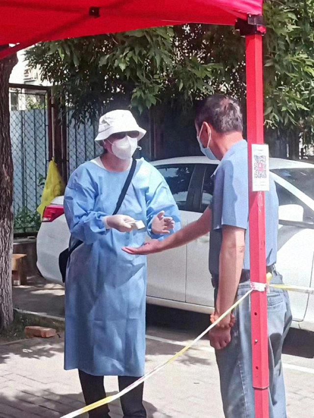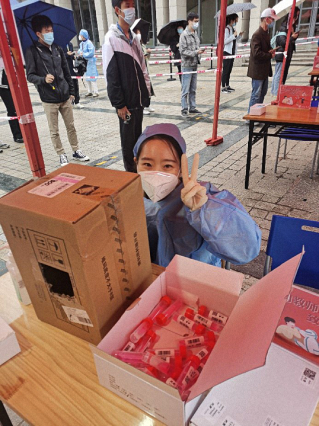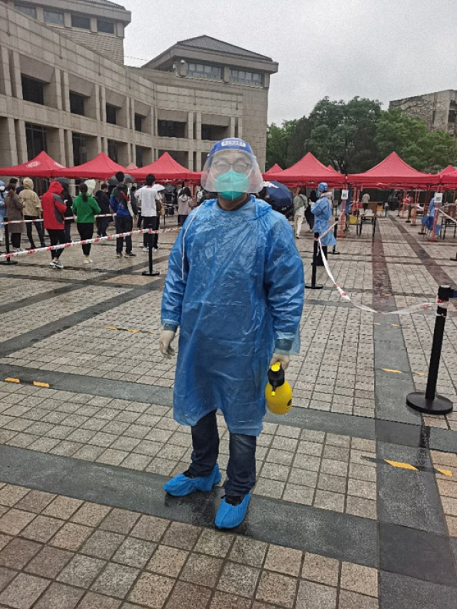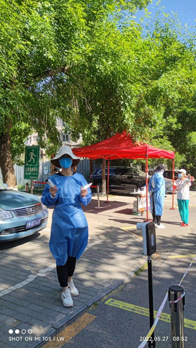 (学院科研办公室冯瑾老师担任防疫志愿者)