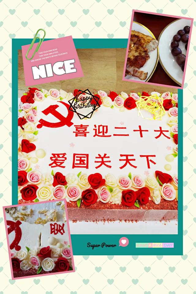 今天的生日会,让大家在党的二十大胜利召开之际,度过了一个难忘又意义非凡的生日。彩蛋生日大蛋糕,既是对二十大的献礼,又是对祖国美好明天的祝福,真的是应时又应景,美味又好看!老师们共同分享二十大胜利召开的喜悦,品味甜美的蛋糕和美食,即是我们幸福生活的写照,也为我们奋斗新征程加油充电。大家默契地把蛋糕上的党旗和“爱”字保留到了最后,希望把党永远放在心中,把爱永远留在国关学院。通过这次生日会,老师们更加信心满满、干劲十足,为了学院和学校的美好明天,为了祖国的教育事业,贡献更多的智慧和力量。