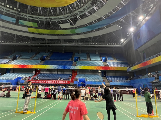 教工杯羽毛球赛时隔三年再次拉开序幕,含女双、男双、混双三场比赛,其中两位老师可以兼项,也就没有北大杯等比赛各队指挥官们运筹帷幄排兵布阵的烦恼,除了各院系以外也有很多学校部门参赛,一共71支队伍好不热闹。人数多的院系和部门甚至最多可以申请四个队,而规模较小的院系和部门也都能参与其中。在场上选手挥洒汗水奋力拼搏之际,场下候赛的队员们因大多是平时训练的好友,嘘寒问暖者有之,谈笑风生者有之,相互调侃者有之,这就是教工杯的百态,也是教工杯的特色。
