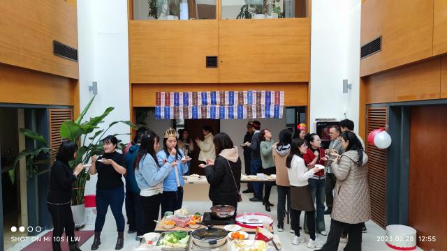 上午的学院A座大厅,张灯结彩,在学院工会主席闫岩老师和副主席霍艳丽老师的悉心安排下,活动前期准备已经紧锣密鼓地开始啦。新学期首场生日会,汇聚了自2022年11月至2023年2月四个月份的寿星,在前期发布的生日邀请函上,霍老师温情写到:“美好的二月,我们开始了新学期,大家一扫之前疫情的阴霾,转变心情,再次出发。学院工会为11月、12月、1月、2月份过生日的寿星们举办生日会,送上生日祝福!学院为大家精心准备了生日蛋糕和美味的火锅,请您自带餐具,前来品尝。您可以在在这冬春交汇之际与有趣的人相聚,感受不一样的生日汇,感受大家庭别样的温暖!”
