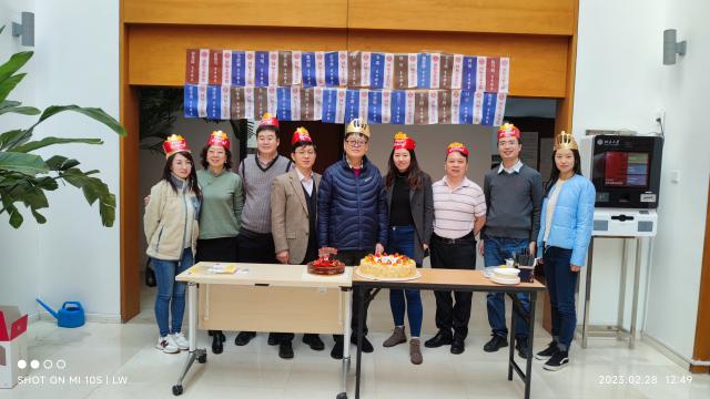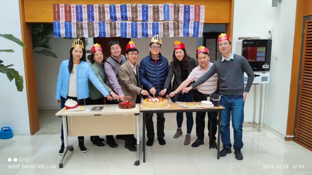 生日大合影是每次生日会的“高潮”环节。寿星们在学院制作的精美彩旗下,共同切下了盛满祝福的生日蛋糕,切开了新学期的崭新序幕,切出了春季的香甜和芬芳。如风和煦,如春花开,国关学院工会再次祝福11月至2月过生日的老师们生日快乐,身体健康,安康喜乐常相伴,春暖花开人更新!