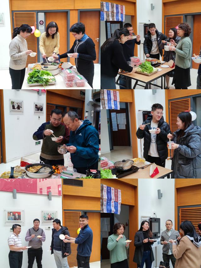 伴随着美味的火锅开涮,大家的话题也热火朝天地聊起来了。老师们三两成群,围在一个热气腾腾的火锅旁边,桌子上整齐摆放着工会提前采购的新鲜食材,有羊肉卷、牛肉卷、豆腐皮、蟹棒、鱼丸……琳琅满目的食材就着香香的火锅味道扑面而来,“开锅了,开吃啦!”老师们相互招呼,相互照顾着,宛如一家人的男女老少。火锅里蒸腾的泡泡,咕嘟咕嘟翻滚着,仿佛在唱着春天的奏鸣曲。一双双竹筷,上上下下,夹送着鲜美可口的食材,放进了火锅肚里,送进了大家的口中,一口接一口,停不下来,目不暇接,大家你一言,我一语,欢乐的气氛、热腾腾的蒸气开启了春天最美的乐章。