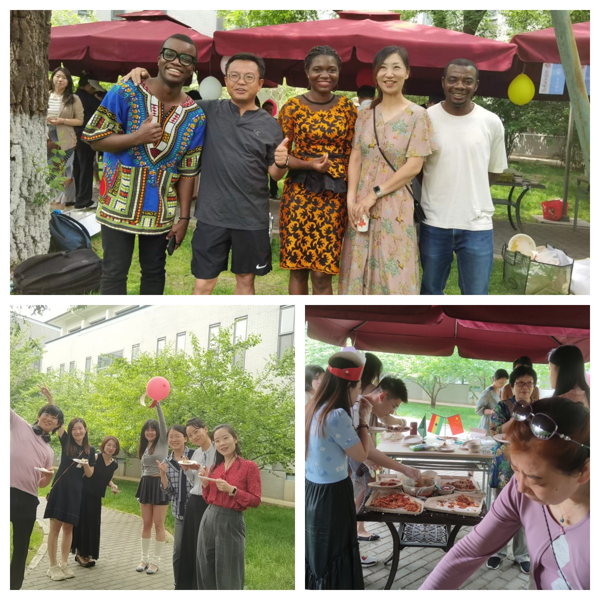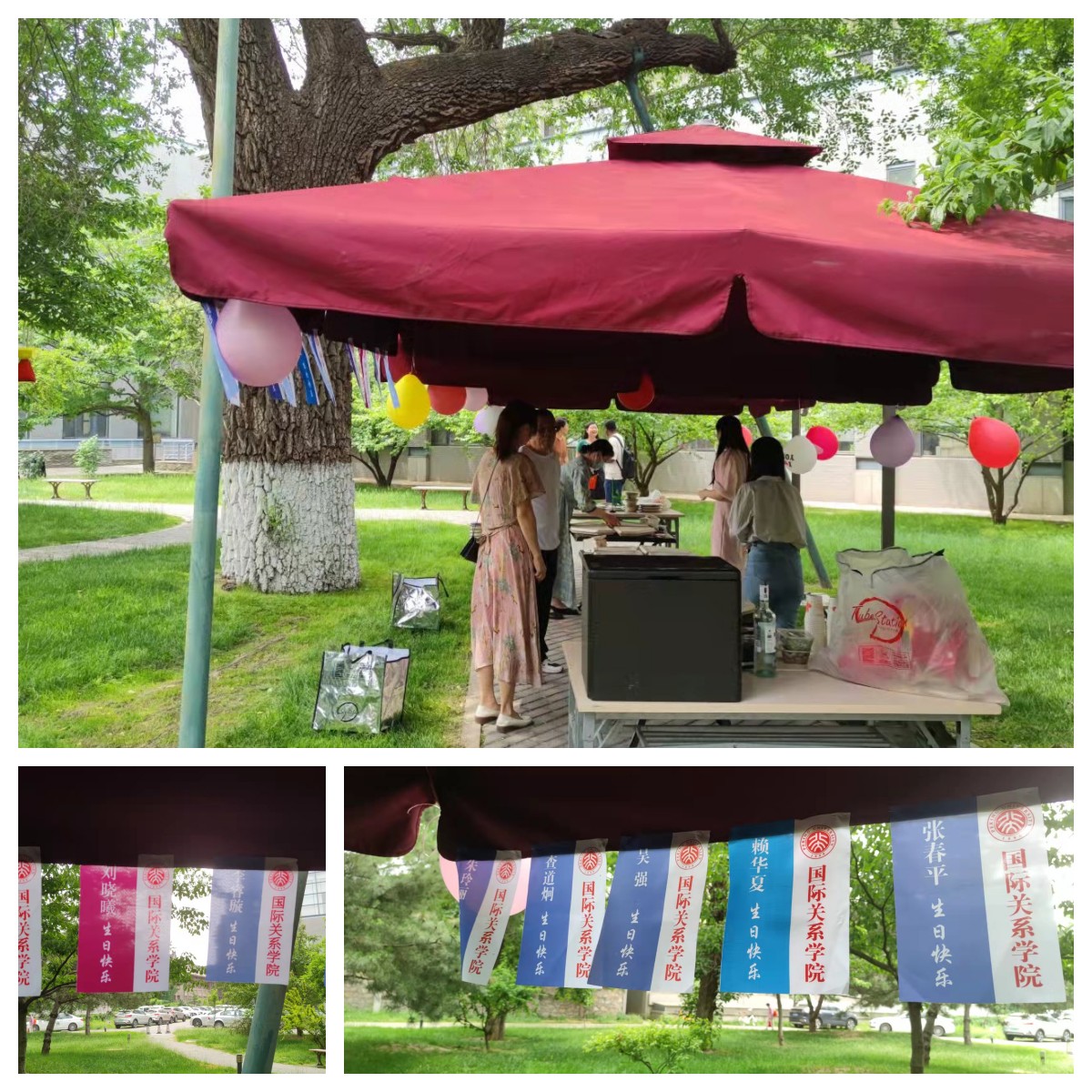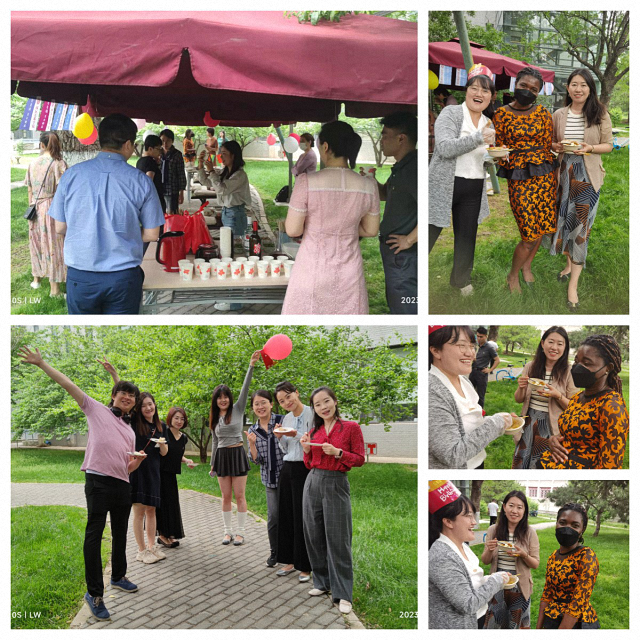 5月25日,国关后花园彩旗飘扬,热闹非凡,这里即将举行学院五月集体生日会。此次生日会可谓爱心满满、惊喜连连,“加量不加价”。学院工会为参加生日会的老师们准备了烤串、披萨、小龙虾等美味佳肴,学院院刊编辑部为五月份的寿星们升级巨献生日蛋糕,更值得期待的是,在非洲研究中心老师们的倾情赞助下,非洲留学生带来了独特的非洲美食展览和分享。