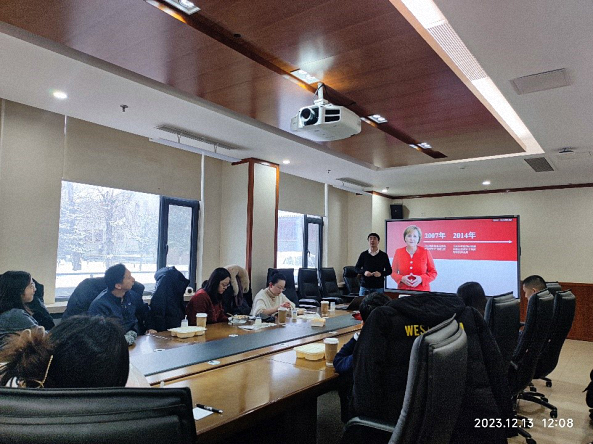 经过了第一轮试讲,卢晓老师结合上次试讲中各位老师提出的问题,快速吸收和反馈,他进一步修改PPT的内容,增加了时间轴、德语标识的翻译、中德领导人会务等内容,另外,他还精心设计与现场观众互动的环节,在第二次试讲中,卢晓老师更加准确地把握课程时长,在20分钟的时间内完美地完成课程授课。