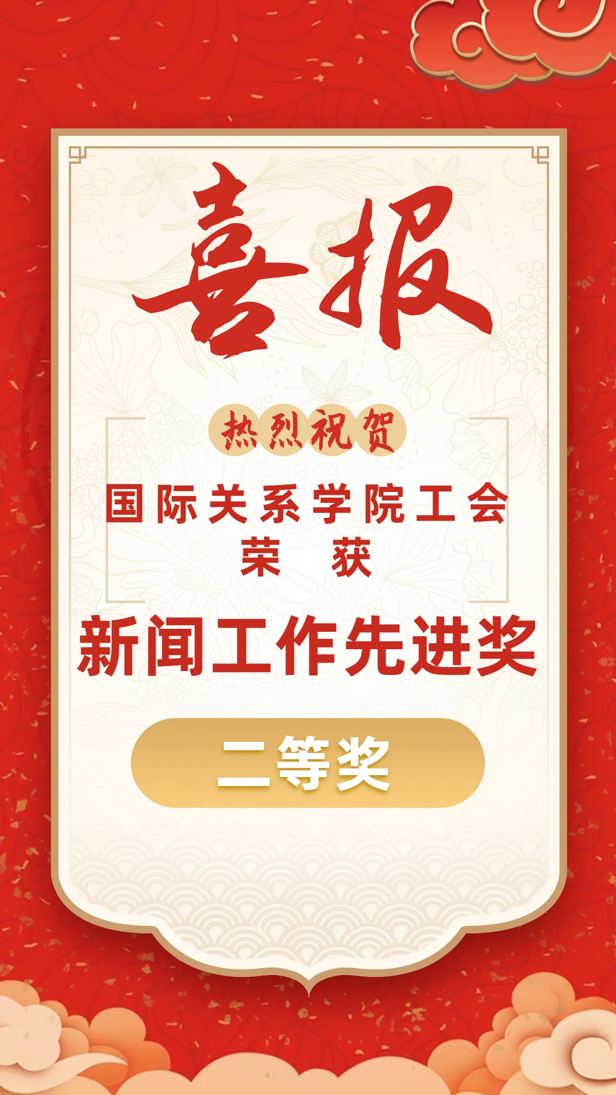祝贺以上获奖老师,国际关系学院工会将以此为激励,在新闻宣传工作上再接再厉,争取在2024年的新闻中办出国关特色,以更快速、更及时、更全面的方式展示国关风采。