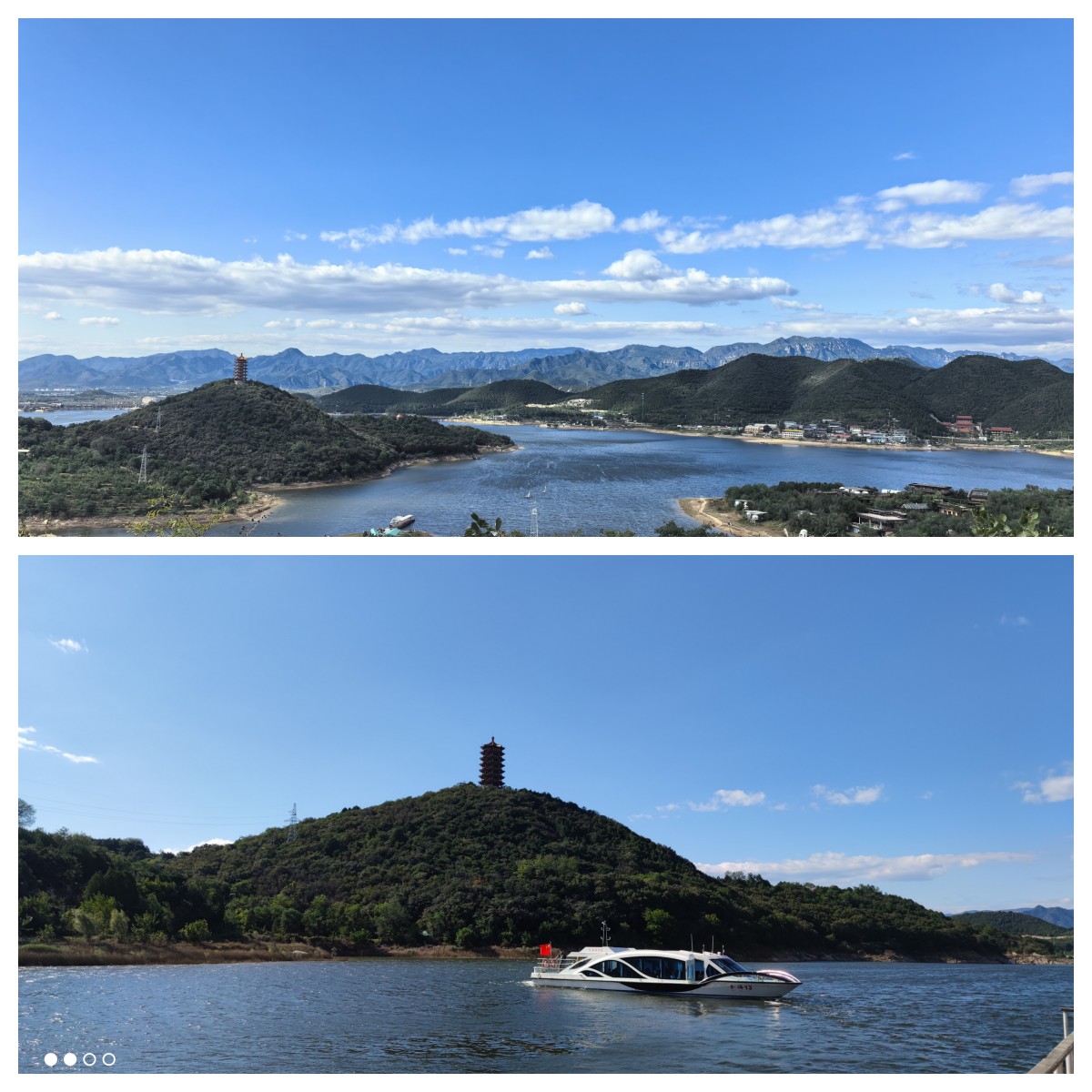 随后,教师们又抵达平谷区金海湖景区。金海湖三面环山,峰峦叠翠、风景秀丽,有千岛湖的湖观山色,又有免耳岭的怪石山,有湖光塔、金花公主墓、 望海亭、锯齿崖等自然景观、人文景观数十处,每一处风景都是历史的低语、自然的赞歌。金海湖水域宽阔,碧波万顷,置身其中仿佛来到了陶渊明笔下的世外桃源,“忽逢桃花林,夹岸数百步,中无杂树,芳草鲜美,落英缤纷……土地平旷,屋舍俨然,有良田、美池、桑竹之属。” 此景此情,恰如诗中所绘,令人心旷神怡,忘却尘嚣。