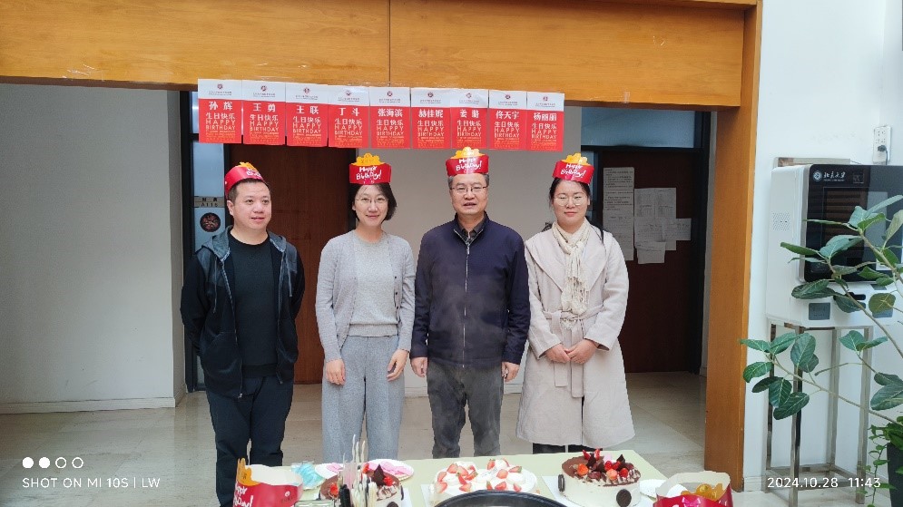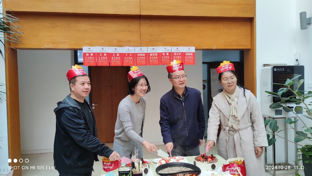 十月份过生日的老师有张海滨、王勇、姜璐、赫佳妮、孙辉、佟天宇、王联、丁斗、杨丽丽等,大家戴上寿星专属生日帽,共同切蛋糕许愿,并合影留念。