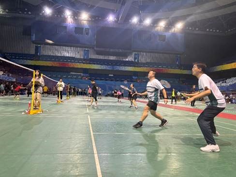 看!这就是新一代“关羽”们在赛场上的风采,大家在比赛中目光如炬,紧紧盯着对手的动作,就像战场上的将军洞察敌军的动向。当羽毛球飞过来时,他们以迅雷不及掩耳之势高高跃起,“啪”的一声,羽毛球如出膛的炮弹般朝着对手的阵地飞去,那气势,仿佛要冲破一切阻碍。