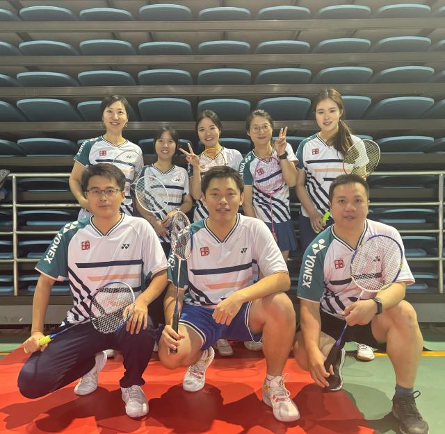 国关学院羽毛球队的队名是“关羽亮刀”,简称“关羽”,队员有霍艳丽、孙辉、王娟、陈芳、高婧雯、赵建伟、李济如、冯溢昕等教职工老师代表。遗憾的是,前一批国关羽毛球主力队员都退休或者因伤病退出比赛了,几名现役健将也无奈缺席,现在的队伍涵盖了80后、90后、00后,可谓学院历史上最年轻的一届“关羽”。除了霍艳丽老师以外,其他队员都是第一次参加羽毛球比赛。