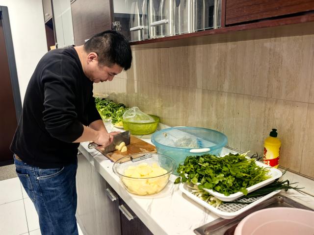 周一上午,学院工会委员就在为生日会紧锣密鼓地筹备:工会生活福利委员汪洋老师带领几位老师开始备料,清洗白菜、茼蒿、菌菇等时令蔬菜,分装羊肉卷、牛肉等涮品,调制麻酱蘸料;咖啡厅刘伟老师准备饮品茶水,确保饮料供应顺畅;工会主席霍艳丽老师带领团队布置会场,各色生日彩旗悬挂于大厅中央,上面定制了寿星的专属姓名,营造出一片红火喜庆的氛围。