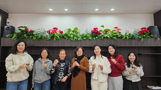 螺钿工艺承载着中华文化的智慧与匠心,希望这场活动能让教职工在感受非遗魅力的同时,增强文化自信与团队凝聚力。活动尾声,大家手持作品合影留念,莹润贝片在光影间熠熠生辉,恰如新时代女性知性坚韧的风采。