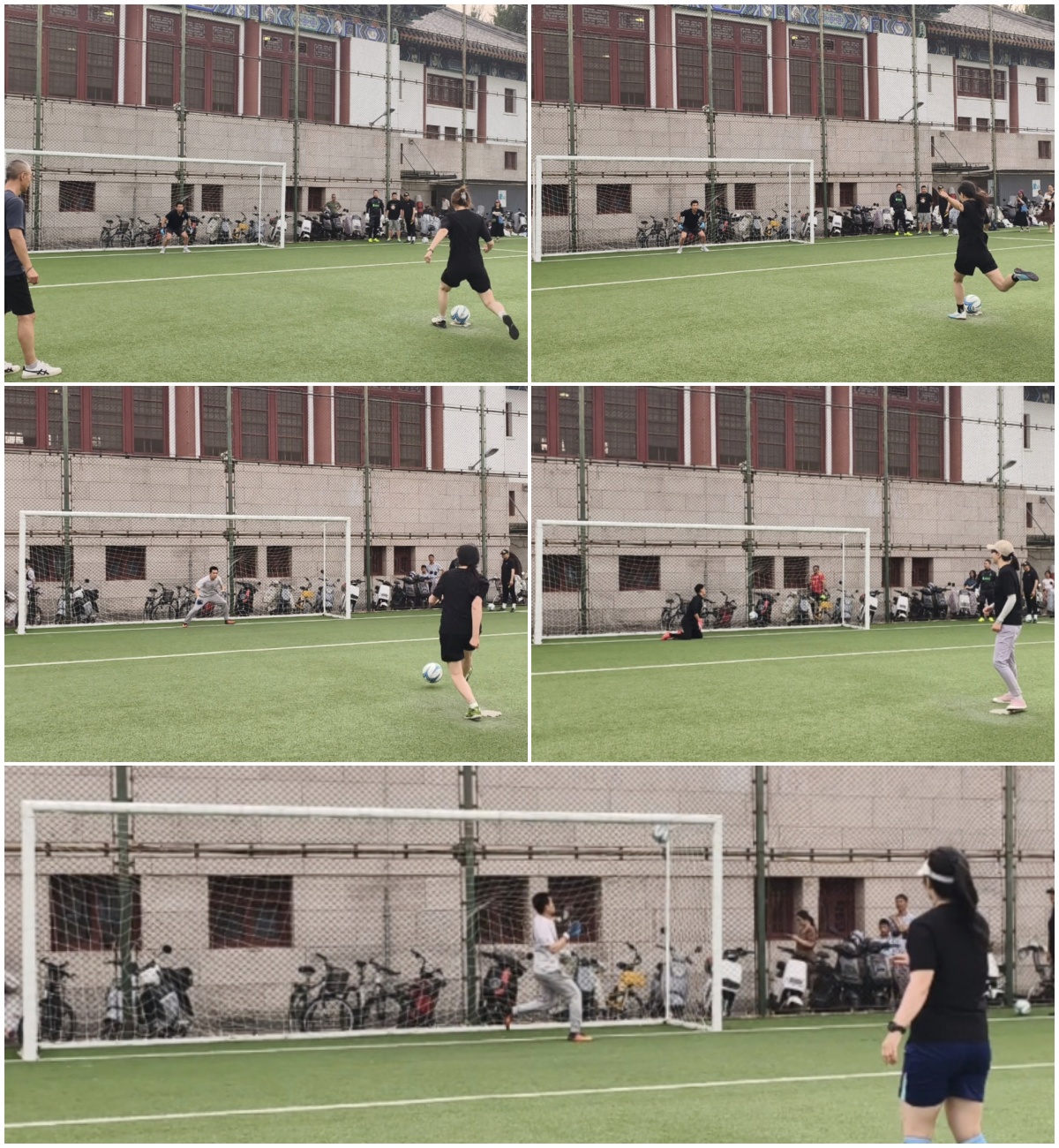 决赛中,国关学院1队迎战环科学院。环科学院率先破门,随后陈丹梅老师扳平比分,比赛进入白热化阶段。在最后的一对一决战中,刘璐老师顶住压力,以一记精准刁钻的点球直挂死角,帮助国关学院1队以2:1的比分锁定胜局,捧起冠军奖杯!决赛日的守门员张昕扬老师表现神勇,多次化解对手的威胁射门,为夺冠奠定坚实基础。