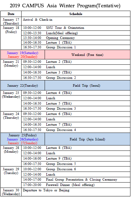--Field Trips (Seoul and Jeju Island)to experience Korean culture, food and etc.