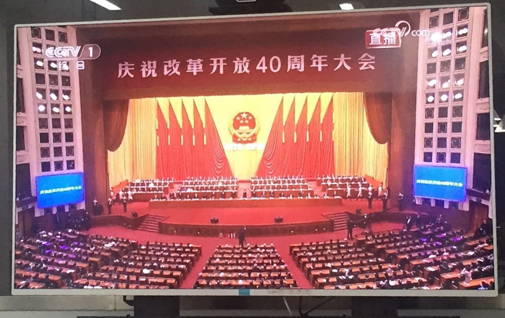 2018年12月18日上午10时,庆祝改革开放40周年大会在人民大会堂隆重举行,中共中央总书记、国家主席、中央军委主席习近平出席大会并发表重要讲话。北京大学国际关系学院组织学院部分师生在国际关系学院图书馆洞明讨论室收看直播,学院领导、老师以及学生代表一起观看了大会直播盛况,表示要认真学习贯彻习近平总书记重要讲话精神,回顾改革开放40年的光辉历程,学习宝贵经验,争做新时代改革开放推向前进的践行人。