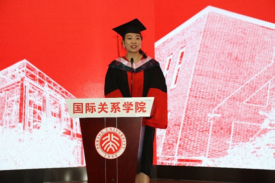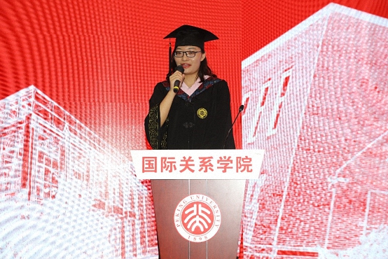 上午9:00,毕业生同学倾情演唱的歌曲为典礼拉开帷幕。随后,在雄壮的国歌声中,典礼正式开始。毕业生代表首先发言。本科生代表、2014级本科生庞祎,留学生代表、2016级硕士研究生郭大平,博士毕业生代表、2014级博士研究生胡王云分别发言。同学们回顾了在国关学院求学的点点滴滴,表达了对学院的眷恋、对师长的感恩和对同窗的不舍,送上了对学院、师长和同学们的美好祝愿。