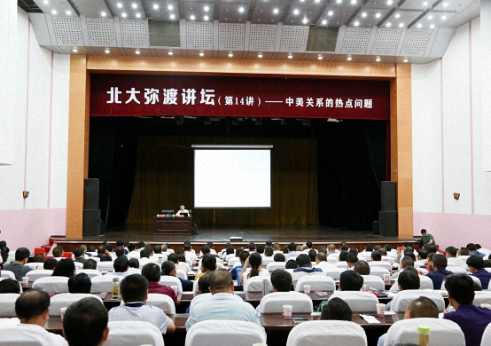 6月19日上午,贾庆国院长在“北大弥渡大讲堂” 作了“中美关系的热点问题”专题讲座,围绕中美贸易问题、南海问题、台湾问题、发展方式问题、中国“锐实力”以及中美是否会走向修昔底德陷阱等六方面进行了深入探讨。大理州政协副主席、弥渡县委书记沙伟风以及弥渡县四套班子领导、县属有关部门负责同志等四百多人参加学习。
