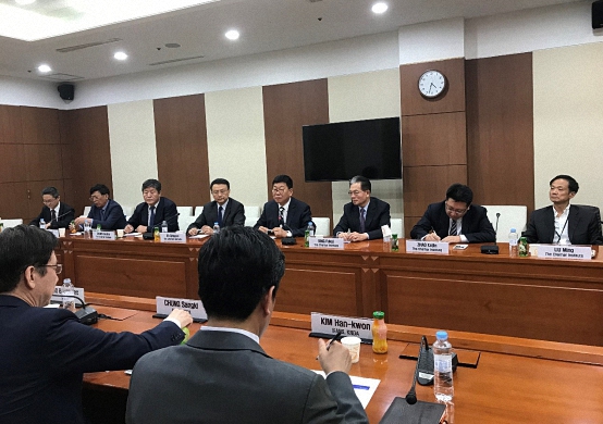 访韩期间,贾庆国院长还与察哈尔学会韩方明会长等人访问韩国国立外交院并与院长赵炳珶大使及该院其他研究人员就中韩关系和朝核问题进行了座谈。与会中方成员包括中国前驻韩国大使宁赋魁、察哈尔学会张国斌秘书长、南京大学国际关系研究院朱锋院长、清华大学社会科学学院副院长赵可金等人。双方就当下的中美关系、美朝双方领导新加坡会见一事等热点国际问题进行了深入的交流。