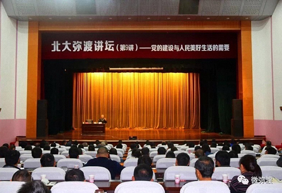 11月14日下午,潘维教授在“北大弥渡大讲堂” 作了“党的建设与人民美好生活的需求”专题讲座,弥渡县委书记、副书记、人大常委会主任、以及县属有关部门负责同志等四百多人聆听了讲座。潘维教授紧紧围绕党的十九大报告,理论联系实际,就如何加强党的建设、实现人民对美好生活需求这一课题,作了视野广阔、见解深刻、内容丰富、通俗易懂的讲解。潘维教授提出我们走进了共同富裕的新时代,党要不忘初心,保持为人民服务的光荣传统,加强基层组织建设,提升组织力,要依靠人民,把人民组织起来自治,实现美丽乡村和美好生活。通过潘维教授的讲座,与会人员对十九大中关于把党的政治建设放在首位的部署,用新时代中国特色社会主义思想武装全党的决定、加强党的基层组织建设和提升组织能力的工作思路有了更深层次的了解;对乡村振兴战略、坚决打赢脱贫攻坚战、推进绿色发展等人民群众对美好生活的需要有了更深切的认识。