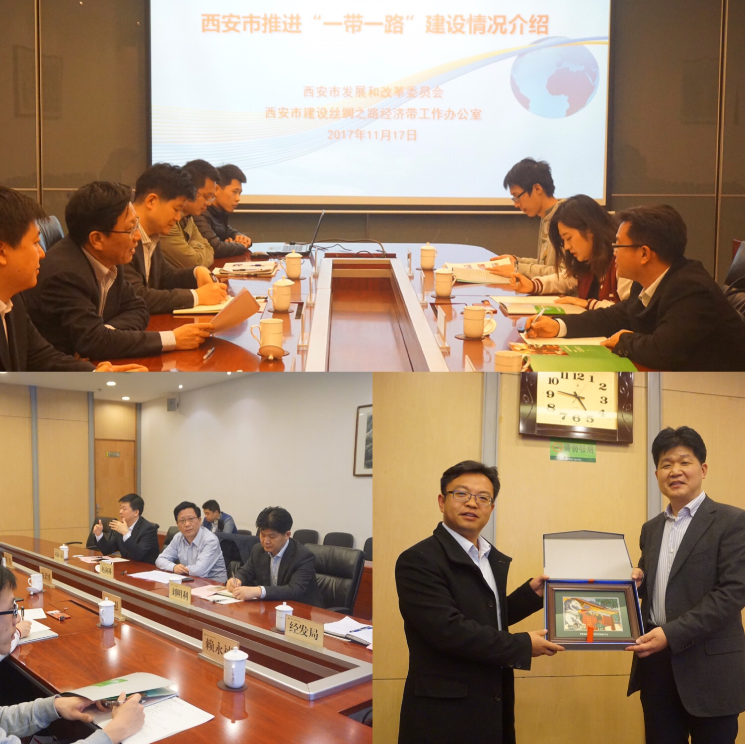 11月16日下午,同学们参访了曲江池遗址公园,园内宫殿连绵,楼阁起伏,“千亩园林、半园曲水”的盛唐风情尽收眼底。17日上午,大家赴陕西历史博物馆进行参访,馆中陈列的自史前、周、秦、汉、魏晋南北朝至隋唐时期的历史文物,让同学们直观又生动地了解和感受三秦大地上绵延的历史进程和深厚的文化底蕴。17日下午,项目一行人前往西安市经济开发区管委会参访,受到经开区管委会刘明利副主任的热情接待。参访第一阶段,同学们聆听了西安市发改委副主任赵寅科关于西安市推进“一带一路“建设的总体情况的报告,了解到自2013年国家“一带一路”战略提出以来,西安市制定了将自身建设成丝绸之路经济带新起点的战略目标,从搭建合作平台、建设基础设施、开放市场、创新金融模式和扩大人文交流等方面做出了许多工作,取得了一些成绩。赵主任还向大家介绍了西安的人才引进政策、自贸区建设规划等情况。随后,同学们就西安市经开区招商引资和产业现状、环境治理等问题进行了深入了解和讨论。参访第二阶段,同学们在西安市经开区管委会招商局副主任王智带领下,参观了位于经开区的西安启源机电装备股份有限公司,公司负责人讲解了公司的历史,并展示了代表国际领先水平、由我国自主研发的新型变压器加工设备,让同学们大开眼界。