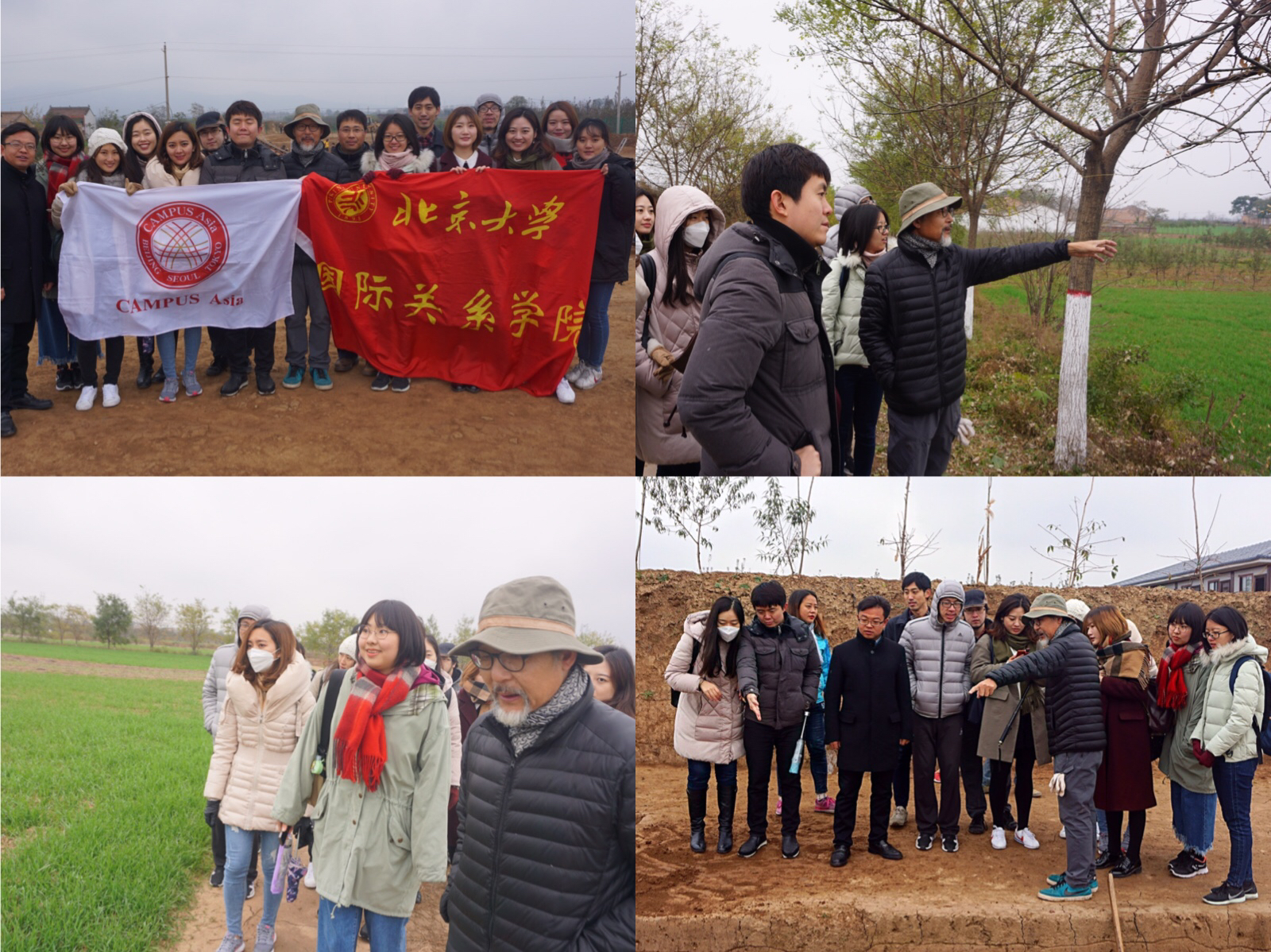 11月18日,同学们赴临潼游览秦始皇陵兵马俑博物馆和华清池。秦兵马俑以其巨大的规模、威武的场面、精湛的艺术水平让同学们惊叹不已。19日,参访团队前往宝鸡市扶风县召陈村北大考古文博学院周原考古实习基地。在考古文博学院徐天进教授、刘绪教授、孙庆伟教授的带领下,同学们亲自前往考古发掘工地现场,了解了考古发掘的基本原理以及北大考古队的主要工作。随后,徐老师带领同学们参观了周原博物馆,徐老师详细地讲解了周原地区的考古历史和此处出土的周朝文物。徐老师告诉同学们,文物不仅可以展示某一时期、某一特定地点的生活状况,它们之间的相似性或差异性还提供了判断当时“国际关系”——也就是国家间政治经济和文化交流的一种新媒介。并且,通过这种物质形态来判断当时的国际关系比通过语言更为可靠,因为语言可能具有欺骗性,而物质却是真实存在的。此外,徐老师还建议参加亚洲校园项目的同学们,未来一定要去中国、日本和韩国的农村看一看,体验农村生活,因为只有深入了解一国的农村才能真正了解这个国家。这一次的参观使同学们认识到了考古学的博大精深,并且领悟到,借助考古学来研究国际关系,会是一个独到且非常有意义的视角。