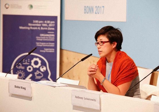 11月10日上午,王彬彬博士参加中国角“气候传播与公众参与”主题边会,介绍由其主持的《中国公众气候变化与气候传播认知状况调研报告2017》的主要研究成果。
