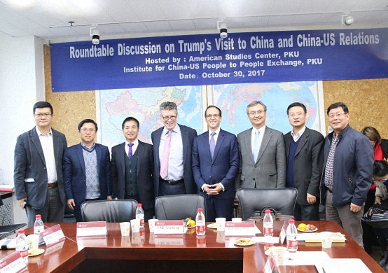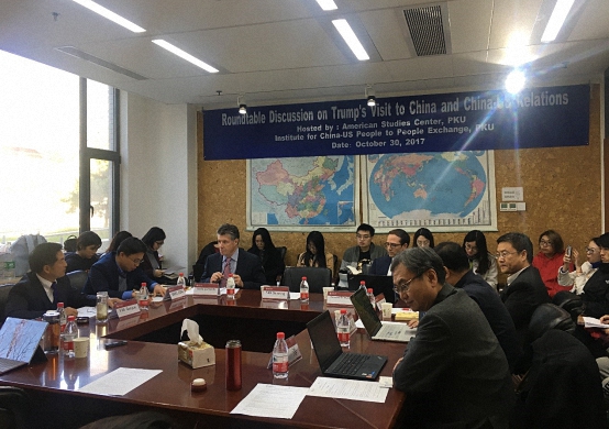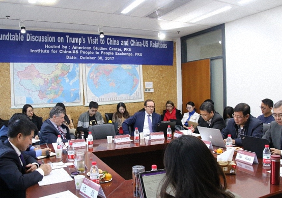 2017年10月30日,由北京大学美国研究中心和北京大学中美人文交流研究基地共同主办的、主题为“特朗普访华与中美关系”的圆桌讨论在我院C104举行。