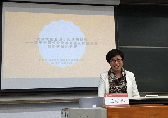 2017年10月20日,由北京大学国际关系学院、《国际政治研究》杂志编辑部、察哈尔学会联合主办,北京大学国际关系学院博士后茶话会承办的第二期“国闻”青年前沿讲座在学院举办。本期讲座由国际政治系博士后王彬彬主讲,评议嘉宾为国家气候中心副主任巢清尘研究员、中国社会科学院可持续发展研究中心副主任陈迎研究员与北京大学国际关系学院张海滨教授。讲座主题为”全球气候治理:现状与趋势——基于全国公众气候变化认知度调查最新数据的分析”。副院长王逸舟教授、察哈尔协会副秘书长王冲、院科研秘书潘荣英老师、《国际政治研究》编辑部主任庄俊举副编审参加讲座。在站博士后、博士生、硕士生与兄弟院校学生共50多人列席。讲座由外交系在站博士后朱小略主持。