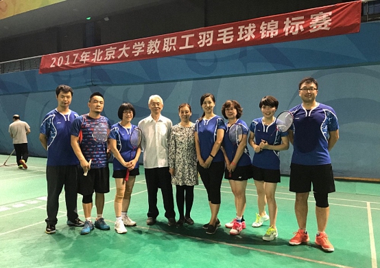 在羽毛球场上,国关学院亦曾为个中明星。学院在科研上纵横捭阖,游走东西,各路英才辈出,曾有多名奥运冠军于此求学;羽毛球一项亦系出名门:老一辈耆宿中有名家梁英明与刘金质先生。梁教授自印尼归国,球路高妙;刘先生自湘而北,南人擅拳,拍下自有杀伐之气;后有张敏秋、韦民、王联、范士明、关贵海、张海滨、张小明、潘京初等长青老帅,各擅胜场。时日寰转,盛衰两继,虽然经历了多回代际交接,国关教职工羽毛球队人才渐若晨星。但在历经滑铁卢之后,学院上下一心又遣精锐参与此次打擂:李扬帆、闫岩、曹宝萍、霍艳丽、唐静、程鹏翔、朱小略组成新的“关·羽”小队,并在去年不幸落败降级的阴影之下,重返强敌环伺的羽球赛场,在四天的赛程中绝境求生。